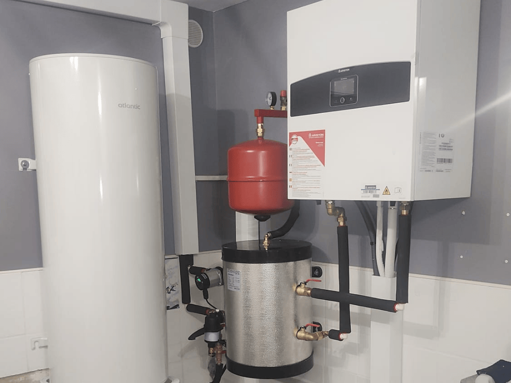 Même sans chaudière, l’eau chaude sanitaire peut être produite : soit par un ballon électrique, soit par un ballon thermodynamique sur air ambiant ou air extrait, soit via une pompe à chaleur air/eau « duo » avec ballon. L’eau est chauffée par un échangeur, puis stockée dans le ballon, avec priorité ECS et régulation de température. Le chauffage des radiateurs et/ou du plancher chauffant peut rester assuré en parallèle. Le remplacement d’une chaudière fioul ou gaz est pris en charge, et nos équipes vous orientent vers l’option la plus adaptée à votre logement.